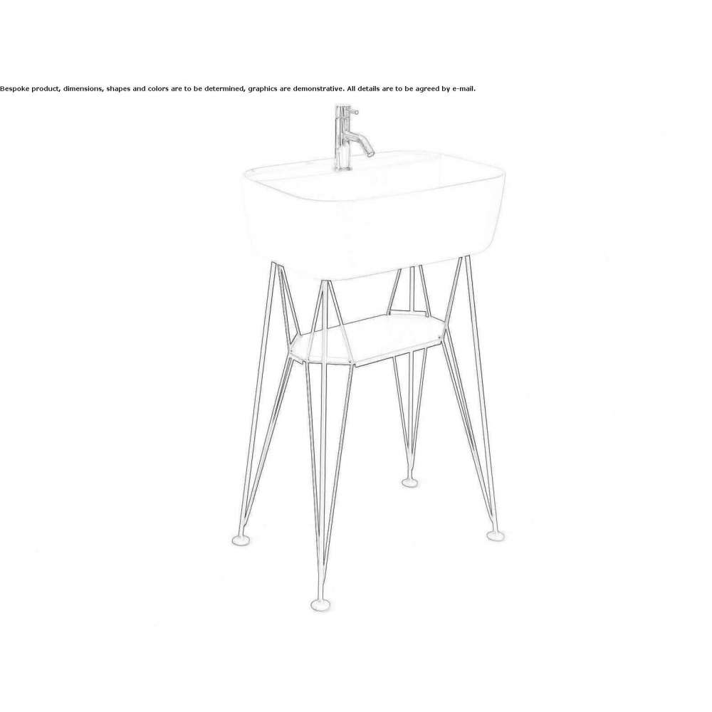 Gus is the "little brother" of the iconic Ray sink. Both facilities are inspired by contemporary, classic furniture rather than typical sanitary installations and give the bathrooms a bit of a living room atmosphere. The slim, handcrafted ceramic washbasin with a hidden siphon is supported by a light and transparent structure that recalls Gustave Eiffel's Parisian masterpiece. This makes Gus ideal for small or narrow bathrooms. The Gus metal construction is available in chrome or with a corrosion-resistant white powder coating.