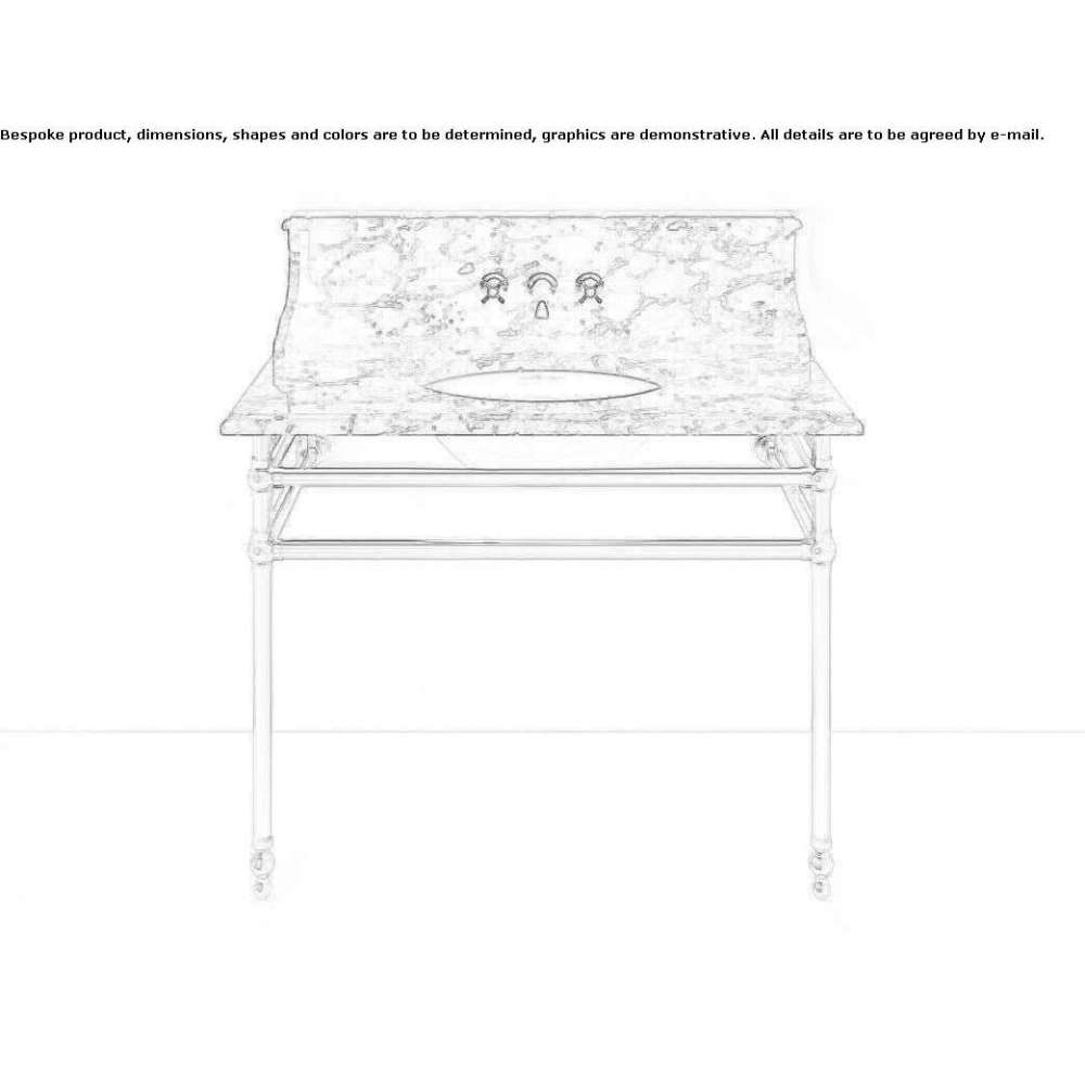 Marble & Metal is a classically inspired console washbasin that combines the value and prestige of a countertop and marble base with the elegance of a metallic brass structure, reinforced with the contrasting porcelain of an undercounter washbasin. A stand for items available to enrich its use. Available in all metal finishes listed in the catalog and in a wide range of custom marbles.