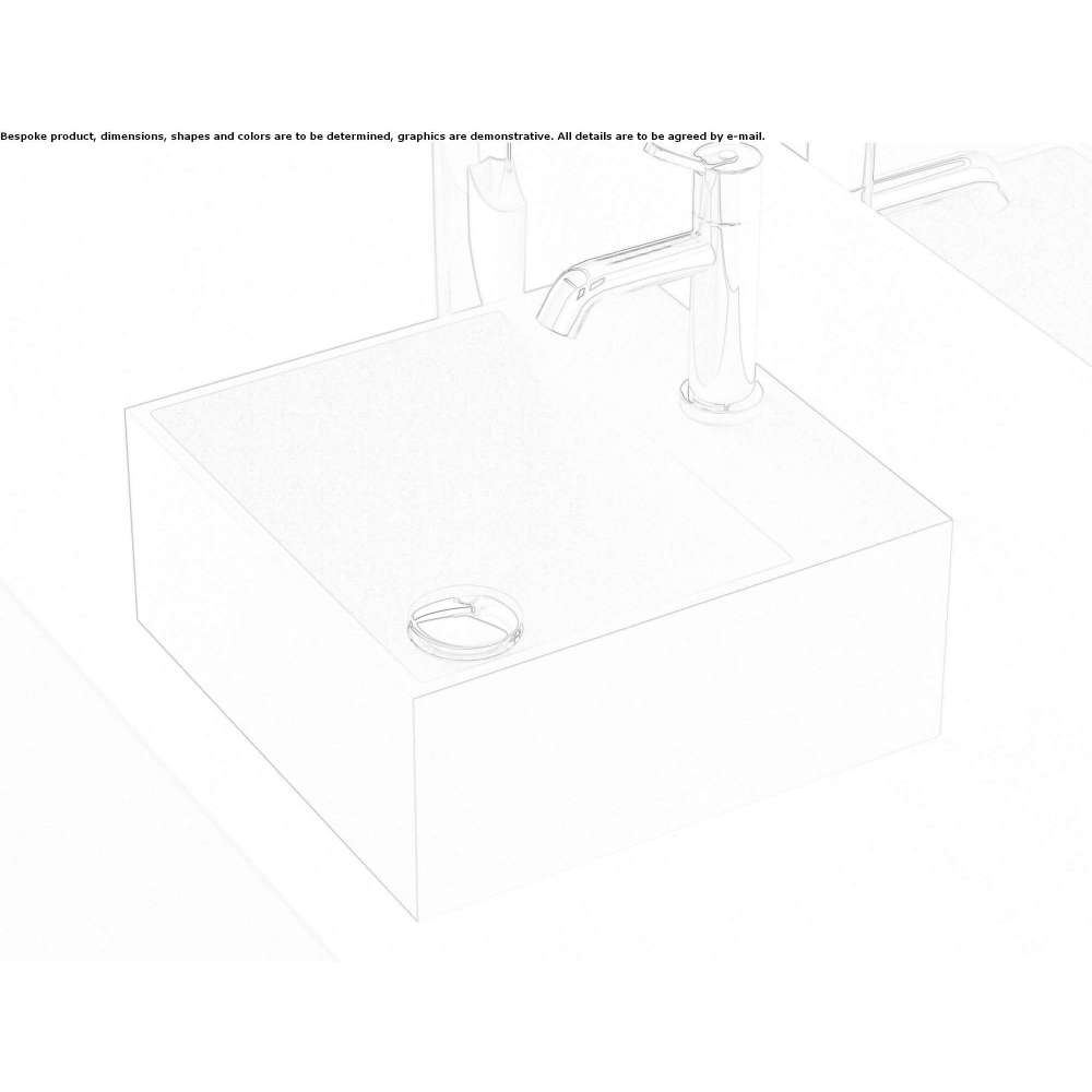 Square washbasin based on White Cristalplant® biological base, available with or without tap hole, without overflow. Fixing kit included. Also available is a model with a side storage shelf.