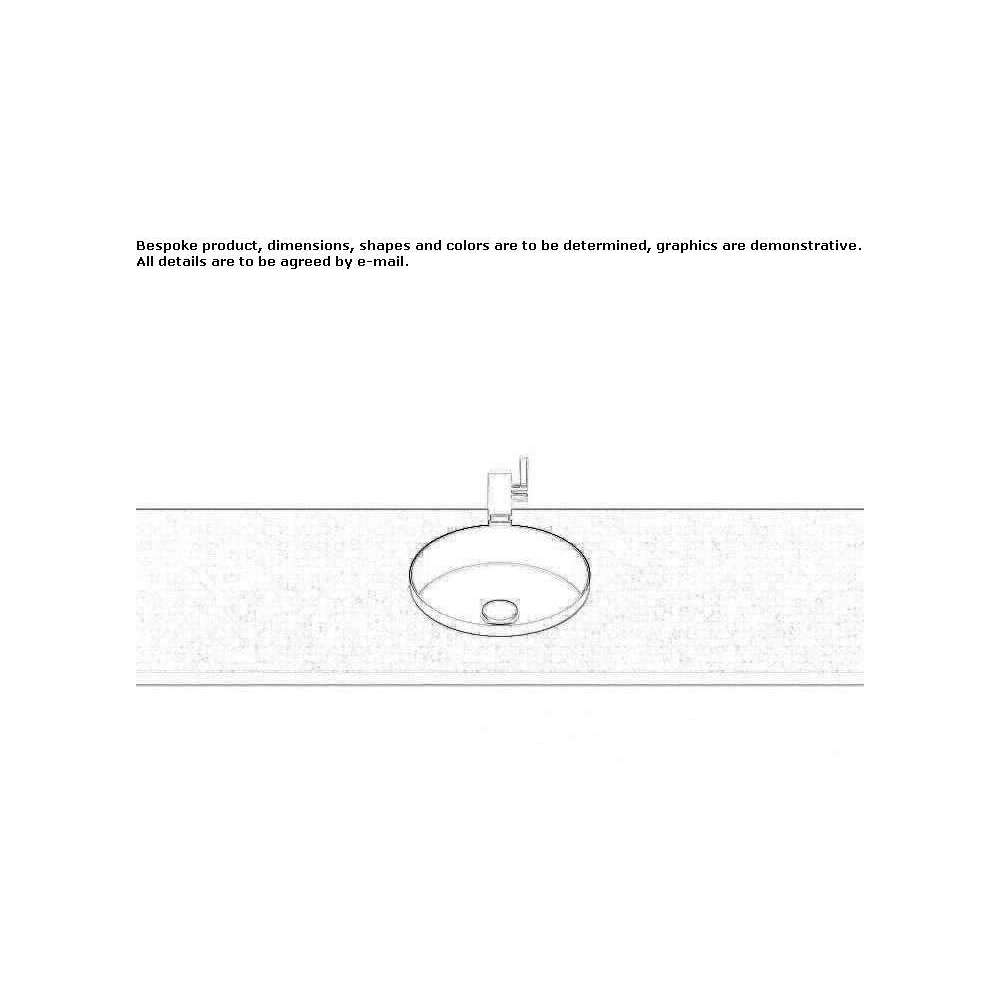 Round built-in washbasin ø 325 mm, height 104 mm, of which 25 mm protrudes above the countertop, glazed inside and outside, optimized for installation in 30 mm thick countertops, without tap hole and overflow, drain valve with chrome cap included