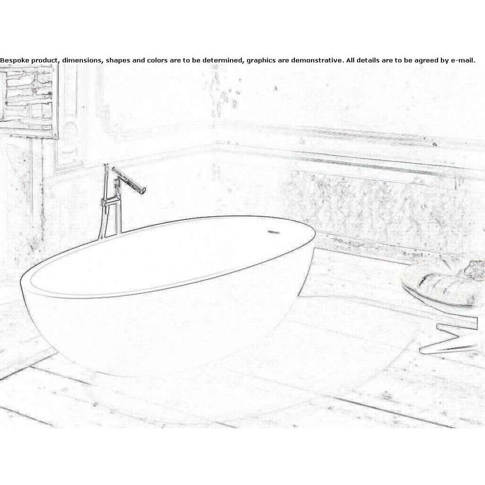 Oval bathtub made of white Cristalplant® bio-base or two-color (outside in dark gray RAL7021 or light gray) RAL 7044 ); with overflow, without tap holes. The faucets can be mounted on the wall or on the floor. It is possible to produce a two-color model in colors selected by the customer for an additional 15% of the price of the two-color finish.