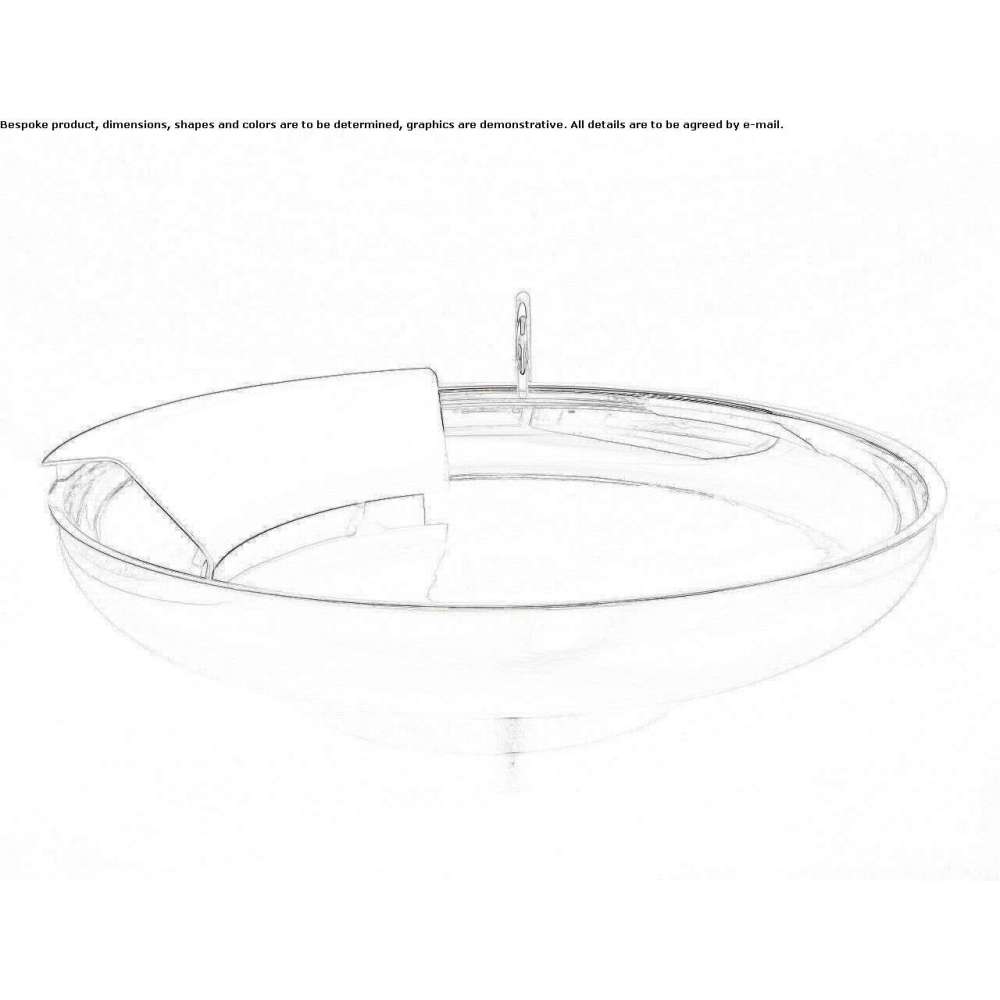 wide stainless steel disc with a white backrest based on biological Cristalplant®, large enough to accommodate more than one person: the Ufo bathtub is both unexpected and fascinating with eye-catching details. Behind the simple shape lies a refined and unexpected design concept in which the bathtub becomes a trouvé object. The bathtub, made of polished stainless steel (A) or painted white with a dark gray (RAL 7021) external surface (ZG), uses formal solutions and materials taken from large storage silos or industrial tanks, using the same construction techniques. The extraordinary size of this bathtub ensures an extraordinary bathing experience.
