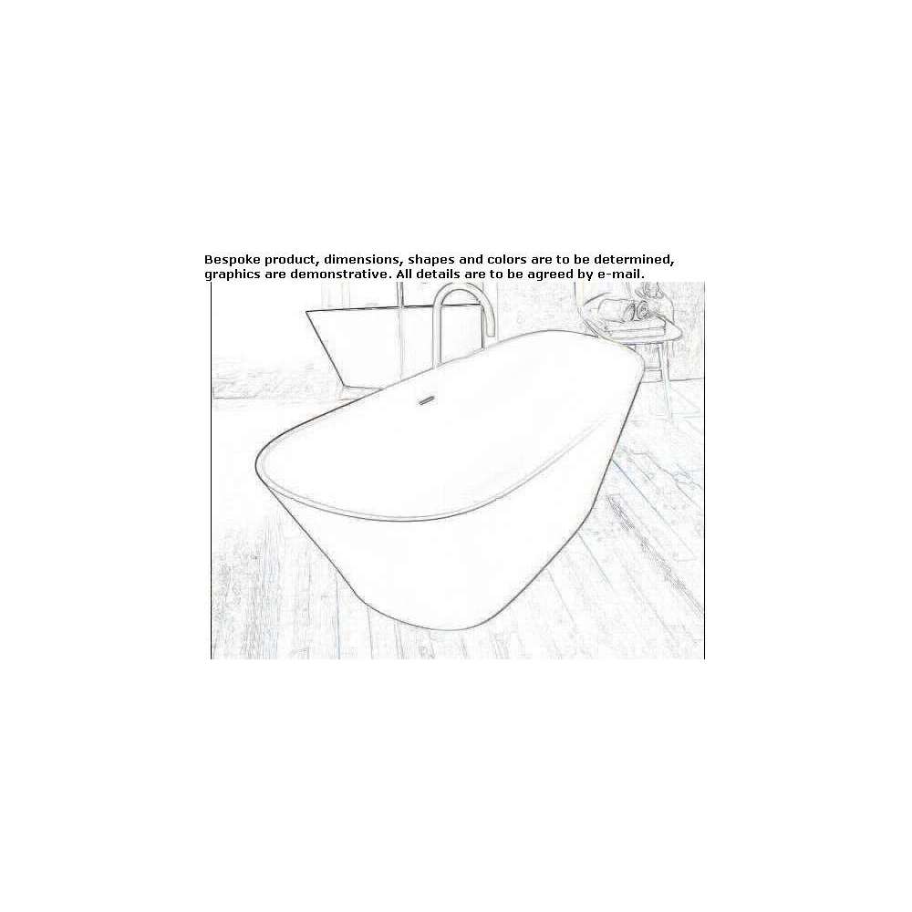 A free-standing Cristalplant® Bio Active bathtub in the center of the room, glossy or matte. Dimensions 170 cm by 74 cm. Drain plug cover with chrome finish.
