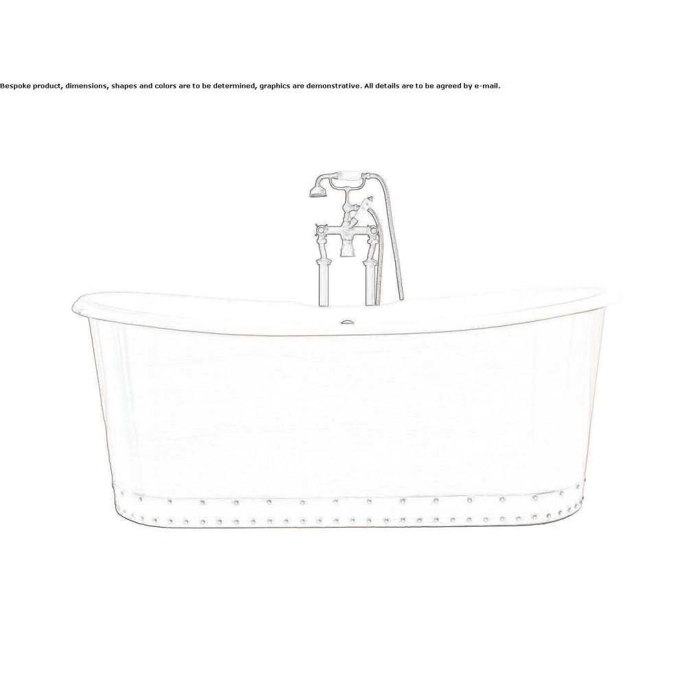 true vintage-inspired home jewel with a unique design. The outer cast iron surface of the Ambra bathtub is covered with a hand-made foil of antiqued copper, decorated with a studded band emphasizing its strong character.