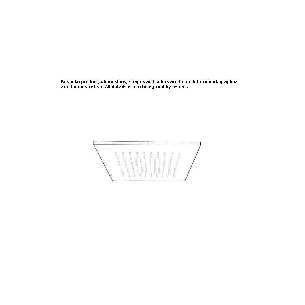 Afilo est une pomme de douche carrée au plafond avec chromothérapie avec fonction pluie. Electronic parts included with waterproof remote control and hook. Suitable for 12V power supply, not included. To be completed with a cover (not included). Available in both built-in and outdoor versions and in square, round and rectangular shapes, the Afilo multi-function system has a very sophisticated look. Light emission has been carefully studied to maximize emotion and well-being; this goal is achieved thanks to an outer cover made of very thin steel and inclined inner walls that improve light dispersion.