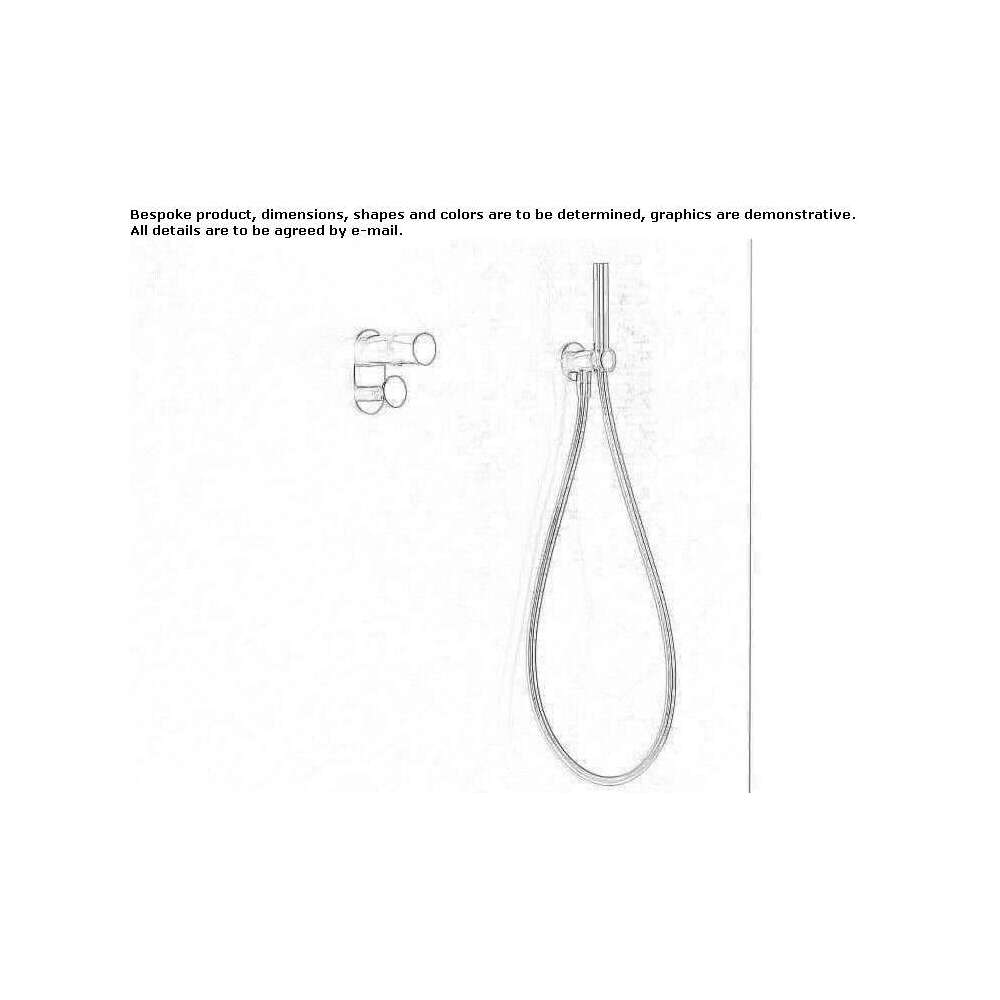 Single-lever shower faucet with a hand shower. The design was born from the desire to create a faucet that returns to the pure, simple, archetypal shapes of early designs: POP is the meeting of straight line and curve.