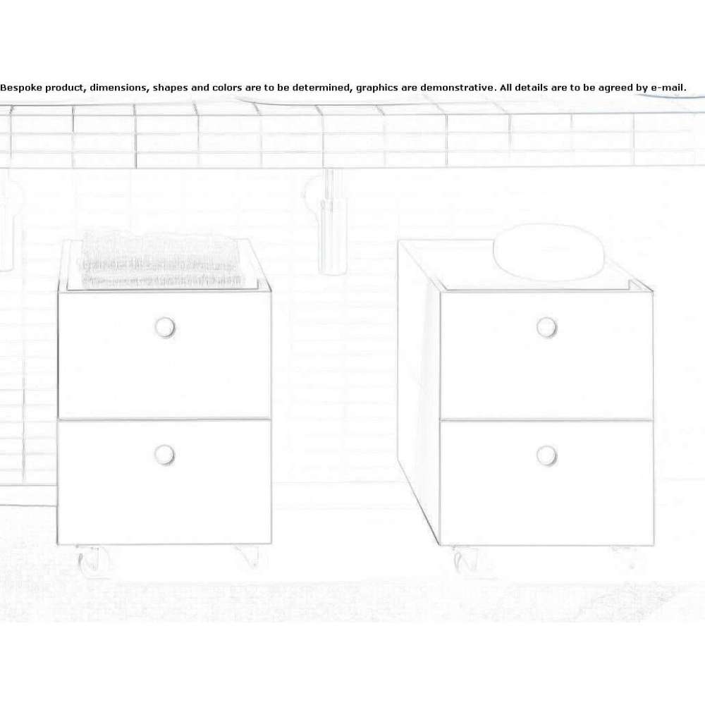 The new Luisa drawer cabinets are characterized by two modular drawers available in 2 different heights (20h and 34h). Modularity and composition make Luisa a practical and flexible component with simple and rigorous aesthetic values. The stackable modules can be painted in Terre and Acque di Cielo colors and mixed together for a highly personalized effect. The upper part of the chest of drawers can also be painted from the back or finished with Azul Noche stone, and the cabinets can also be placed on wheels.