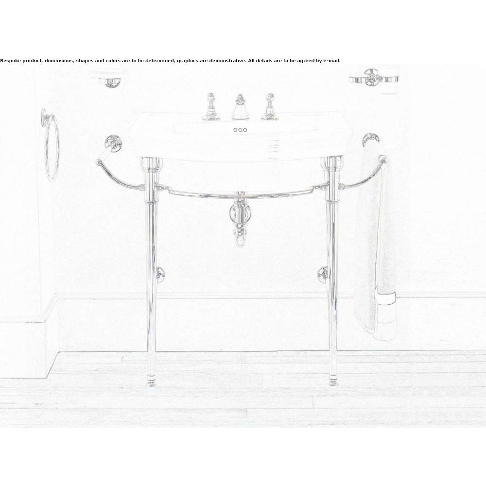This classic-style console with a washbasin made of excellent English porcelain is the perfect combination of love for tradition and practicality. The tower legs and railing are made of turned brass, available in chrome, light gold or polished nickel finishes.