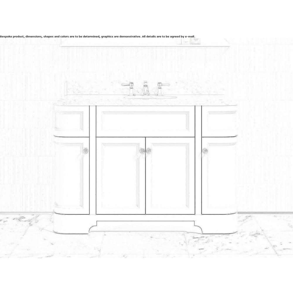 With subtle elegance, the Connaught floor standing vanity unit pays homage to Art Deco influences with sweeping curves, beautiful marble and ogee-shaped bevels.