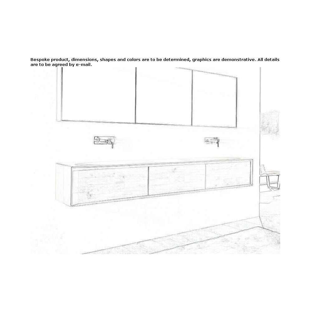 Bathroom cabinet with three drawers, integrated overhead washbasin and double countertop washbasin, size 183cm. Cristalplant countertop with integrated washbasin, Cristalplant drain plug cover. Unit with a beveled front and installation at an angle of 45°. Drawers equipped with a slot or press-and-open handle are fully extendable. An evolution of the SHAPE collection, the EVO version is characterized by edges and corners cut at an angle of 45 degrees and a throat handle. Furniture from the SHAPE EVO collection is available in four different widths and two heights, with a depth of 48 cm; In addition to lacquered finishes, the collection can be made in an exclusive version made of solid European oak wood, which guarantees unique functional and aesthetic values - which remain unchanged for years thanks to waterproof treatment with vegetable wax.