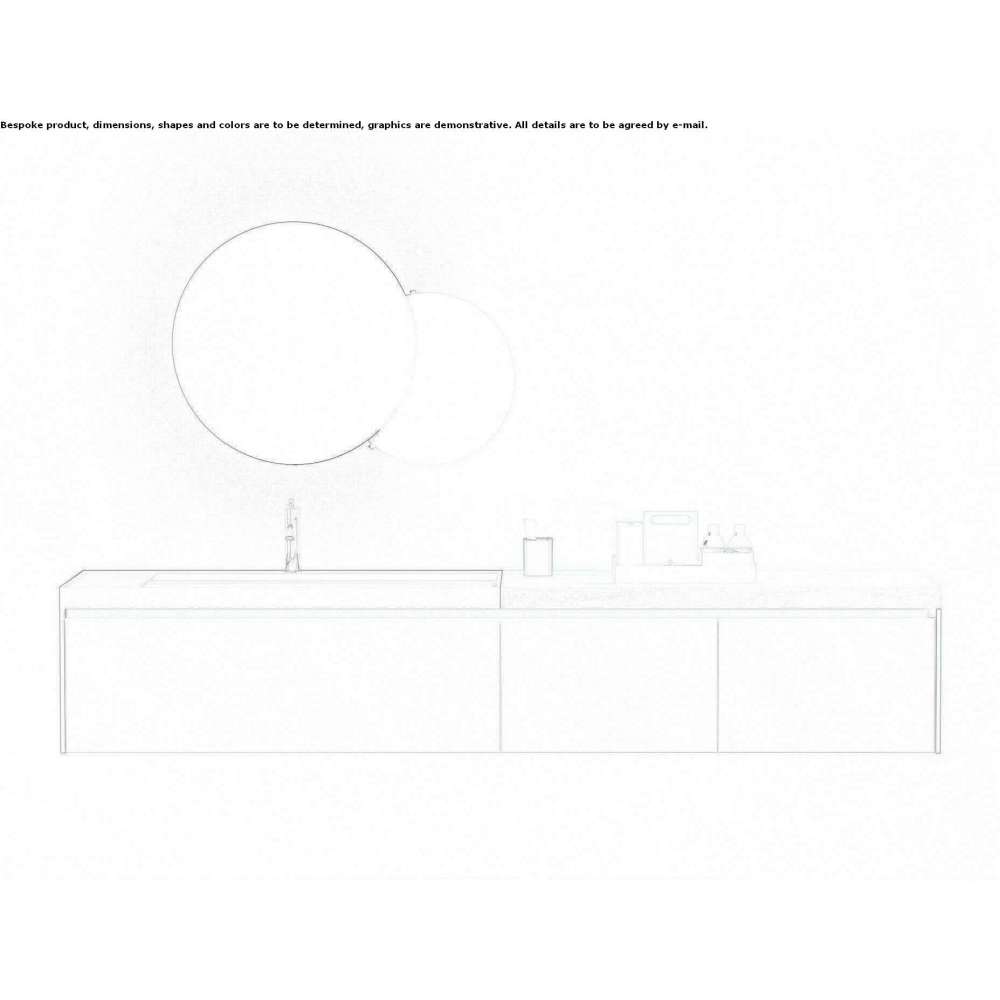 Evo 21 composition plans must always be supported by storage cabinets. Available with a depth of 50 cm in wood, marble or solid surface. The given lengths are nominal and correspond to the total dimensions of the storage modules. The actual dimensions of the tops increased by 26 mm due to the side finish thickness and tolerance; sides are mandatory.