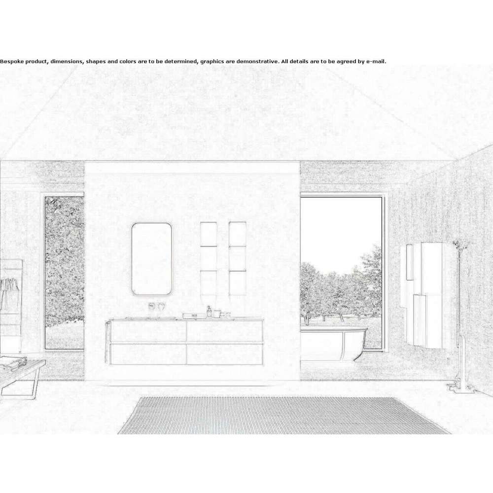 ALL 03 is a sectional cabinet under the washbasin, the elements of which are: - Bottom cabinets with side panels Th. 1 cm, Dekorativo 3D Pelle Pecari Tortora - Handle with a central groove on 3 sides, Dekorativo 3D Pelle Pecari Tortora - Top, thickness. 1.2 cm with integrated Scivolo washbasin, width 60 cm, HPL Unicolor Pulpis scuro - Wall units with Push&Pull opening system, matte lacquer Grigio Talpa - Open wall unit Cube Metal, painted in matte metallized copper - R80 LED mirror, width 50, height 90 cm, illuminated - Side towel rack from the Look series, Painted metal in matte, metalized Creta color. The simplicity of the shapes results from the lack of a handle. A factor that adds clean lines without leaving any distinguishing element. The Lime 2.0 system is based on this assumption. A timeless design.