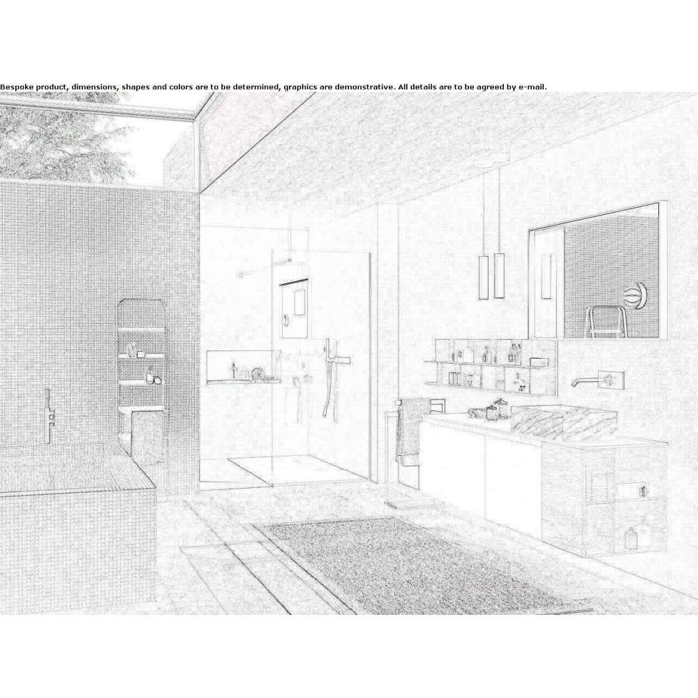 ALL 07 is a sectional cabinet under the washbasin, the elements of which are: - Bottom cabinet with a side wall, thickness. 1 cm, with soft-touch Verde Comodoro lacquer finish - Double base unit with protruding front panel, with soft-touch Verde Comodoro lacquer and Dekorativo 3D Noce Canaletto Naturale - Open compartment in Dekorativo 3D Noce Canaletto Finish Naturale - Groove in a soft-touch lacquered finish Verde Comodoro - Fenix countertop in Verde Comodoro - Modo countertop washbasin in Gres Cava Noir Desir - Climb open wall cabinets in Dekorativo 3D Noce Canaletto Naturale finish - Sole mirror, width 120, height 70 cm, with a matte Nero frame and top LED lighting and a magnetic magnifying mirror - Smile metal ceiling lamp painted in a matte Nero color - Floor towel rack from the Look Matt Nero series, painted metal with a base from Dekorativo 3D Noce Canaletto Naturale - Look series for storage, shelves. Matt Nero painted metal. Simplicity of shapes resulting from the lack of a handle. A factor that adds clean lines without leaving any distinguishing element. The Lime 2.0 system is based on this assumption. A timeless design.