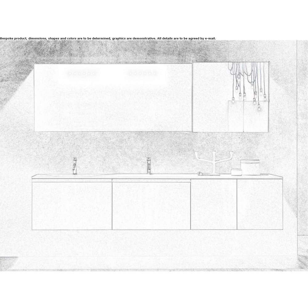 Riga 18 in AL 579 is a double washbasin cabinet with drawers covered with enameled crystals and aluminum handles covered with enameled crystals. Riga is a rigid parallelepiped that becomes dynamic thanks to the handle. Both vertical and horizontal, made of colored glass or wood, the new handle is a key feature of this collection, which is faithful to the tradition of Artelinea in the search for versatility and extreme combinations.