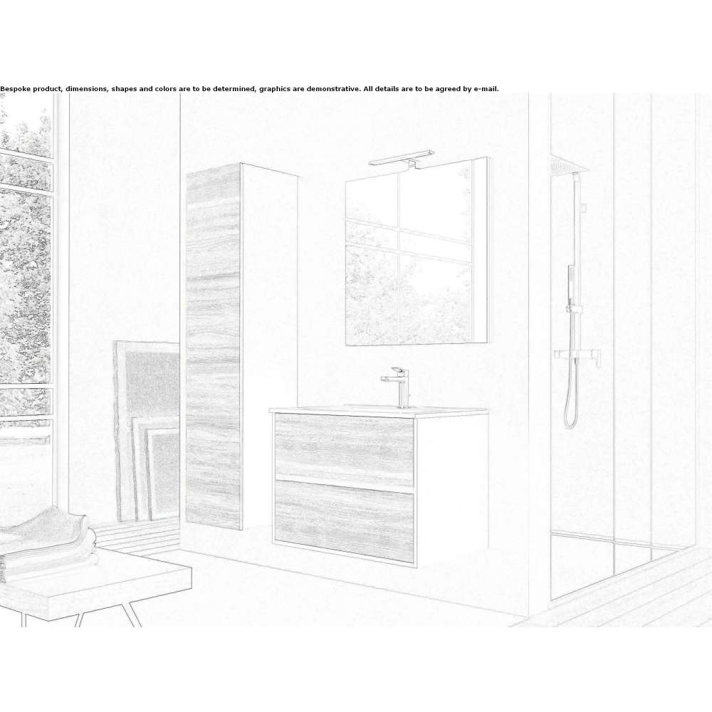 K94 is a washbasin cabinet made of Oslo laminate with a glossy white ceramic console. A strong but at the same time delicate aspect that emphasizes her identity. Just touch the surface of the Skin collection to see how each aesthetic detail enhances various technical functions. The elements, thanks to the use of two colors, also make the various Skin compositions unique in their kind. Bathroom furniture created around SKIN is distinctive because, thanks to its versatility, modularity and high aesthetics, it is shaped from the observer's point of view.