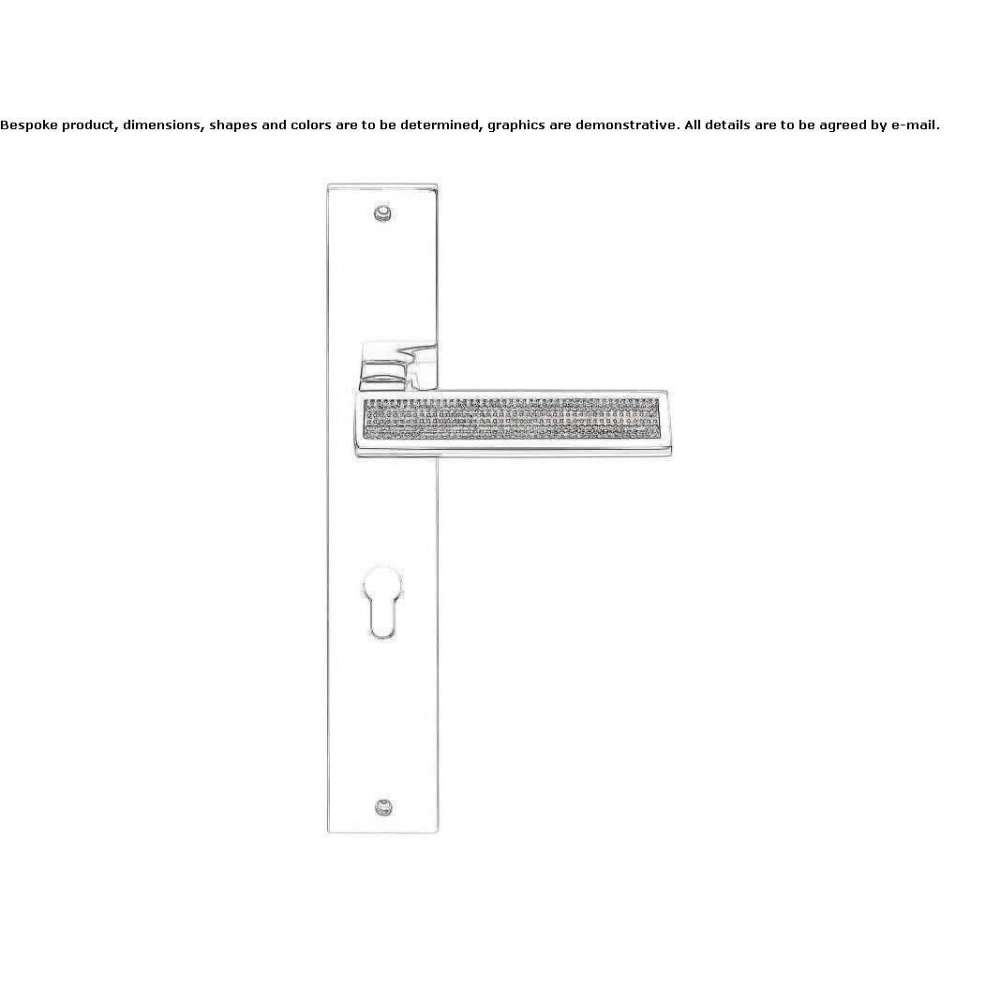 Chrome-plated brass door handle with Swarovski® crystals on the back plate Ocon