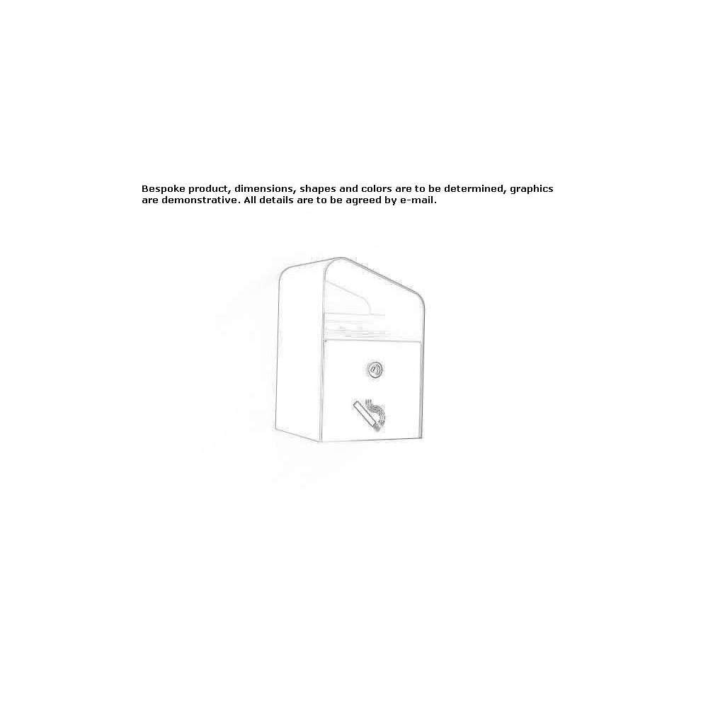 The SPEED WALL ashtray is made on the outside of a 20/10 thick steel sheet, folded at the top to shape the sides and the cover, and of 2 15/10 thick steel sheets to shape the front and back of the ashtray. ashtray. Inside there is a box made of 10/10 thick galvanized steel sheet, fastened at the front with a triangular key lock. It is removed by turning the lock and pulling out the box from the bottom. There are 2 loops on the back of the ashtray for attaching to the wall with Fischer screws with countersunk screws and a diameter rod. from 4.5 to 6 mm (not available).