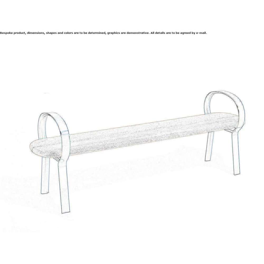 A wooden bench without a backrest with armrests in a modern style Trafaria