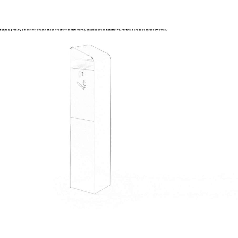 The SPEED ashtray is made on the outside of 20/10 thick steel sheet, folded at the top to shape the sides and cover, and of 15/10 thick steel sheet to shape the rear of the ashtray. It is equipped with a door closed with a triangular key lock, made of 15/10 steel sheet, opened by leaning forward. Inside the ashtray there is a box made of 8/10 thick galvanized steel sheet, with oval holes for easy removal. There are 2 holes with a diameter of 10 mm on the bottom for fastening to the surface using special screws (not included).