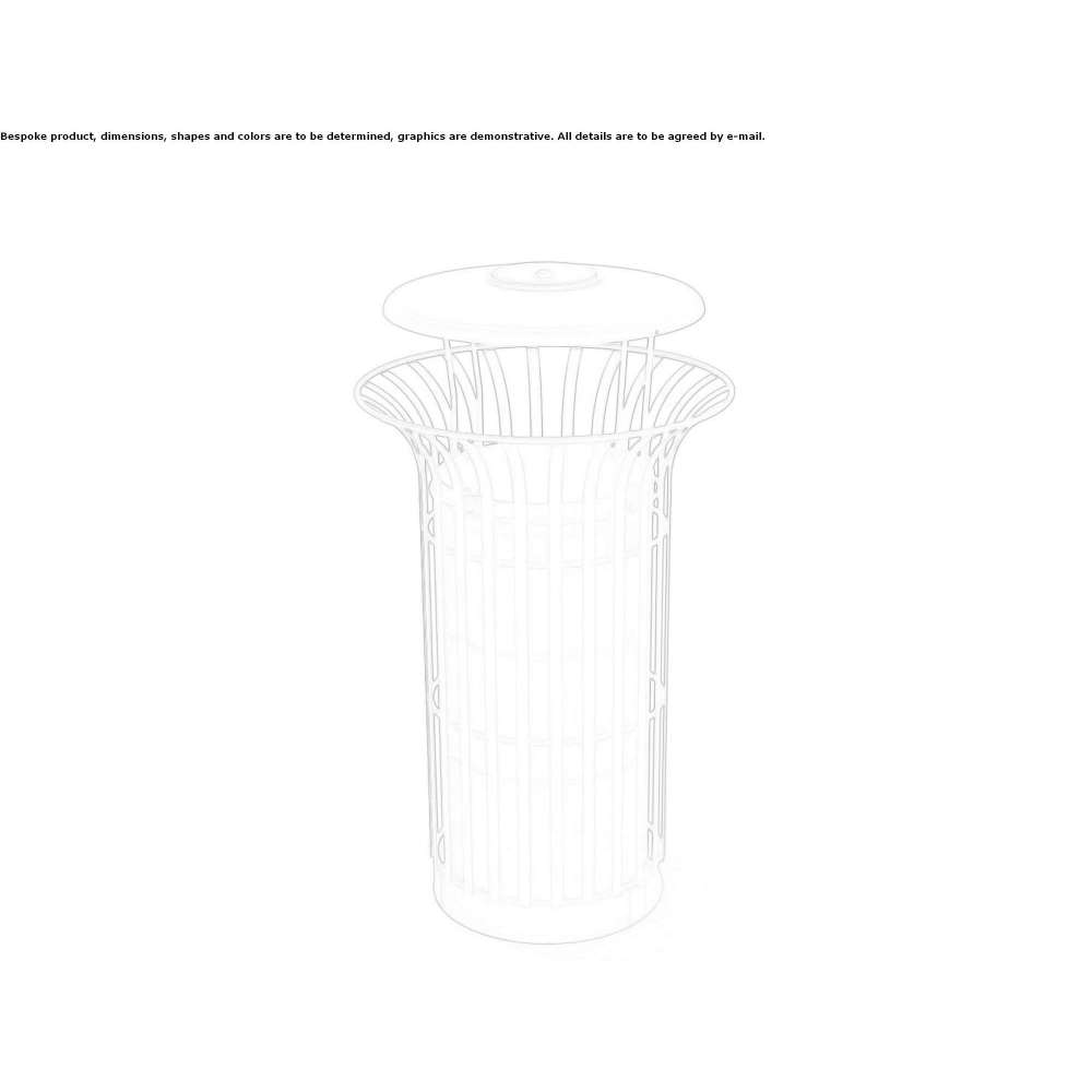 Waste bin made of galvanized and powder-coated steel, round or semi-circular, with inner liner, with or without cover and ashtray.