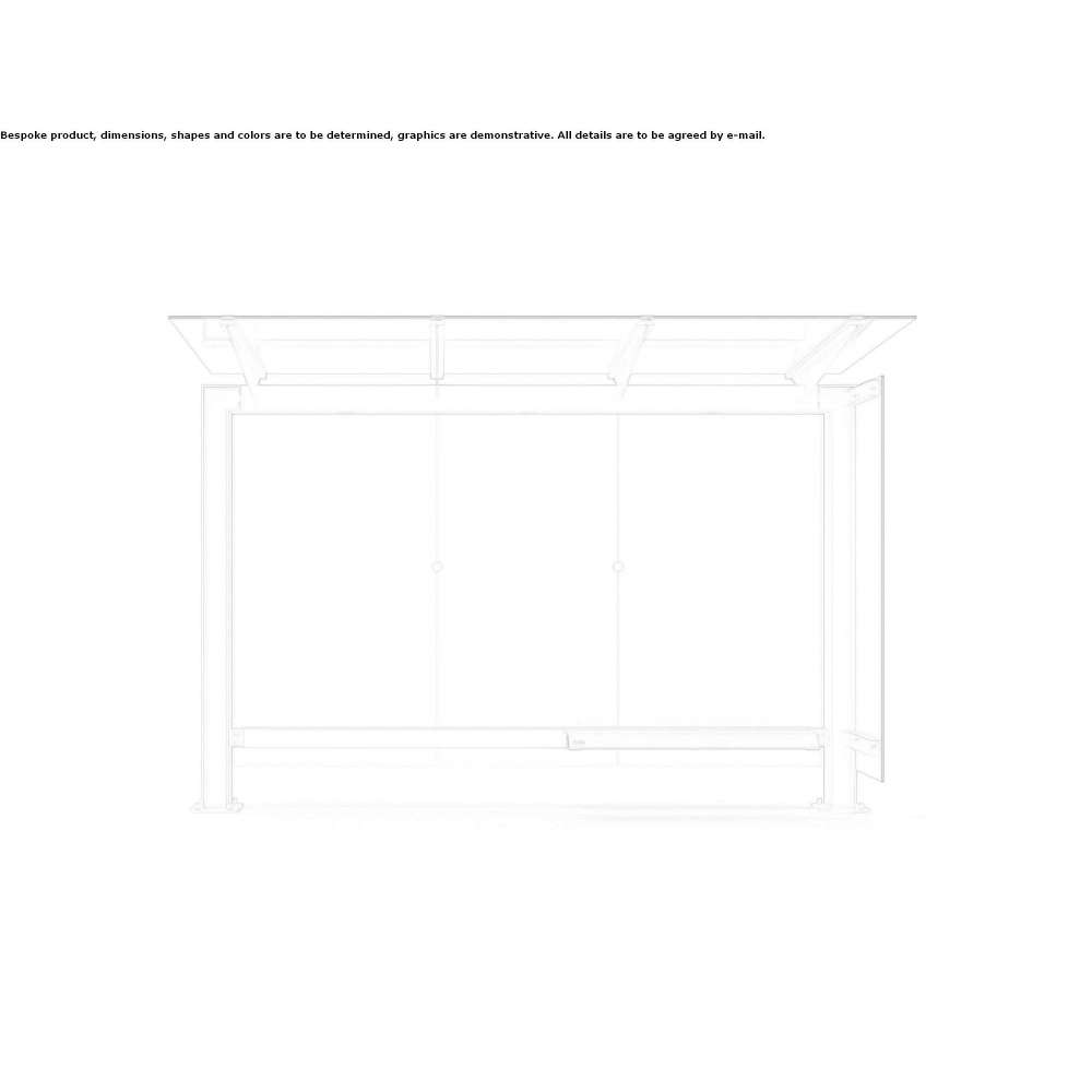 The bus shelter can be equipped with LED strip lighting, glass side walls, side advertising boards and an A3 aluminum display with snap-in.