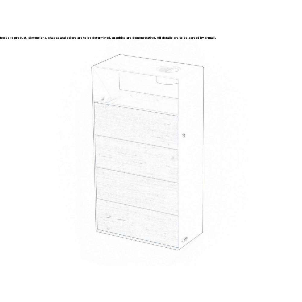 The supporting structure of EIGHT BIN is made of 50/10 steel. The door is made of two elements made of steel sheet, 20/10 and 30/10 thick, to which a panel of multi-layered exotic wood, 20 mm thick, is attached using special screws. The front panel is milled so that it looks like slats. The back is made of 20/10 steel sheet with an additional wooden panel on top, just like the front. There is a triangular key lock on the side of the supporting structure. The internal bag holder is made of 20/10 galvanized steel. It is placed on special brackets welded to the supporting structure, also 20/10 thick. To make it easier to remove the bag, the bag and bag holder can be removed.