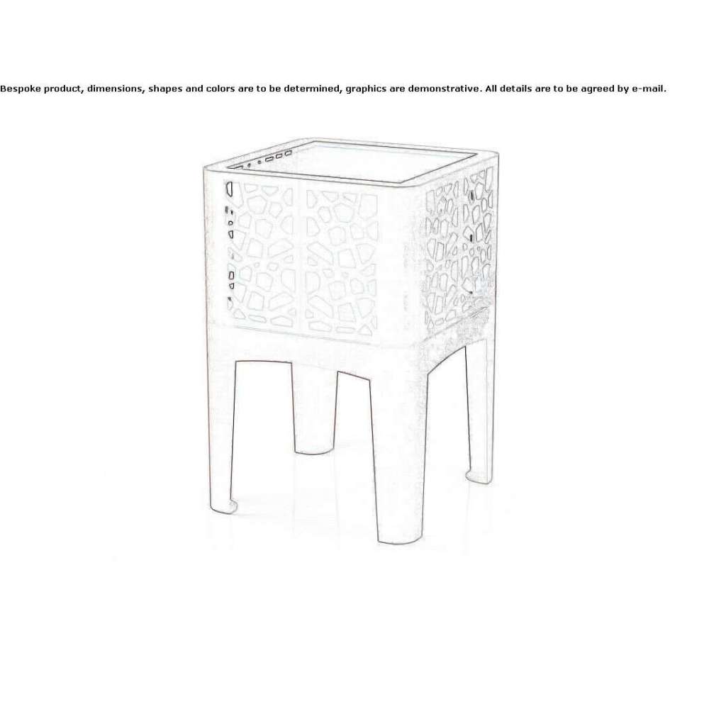 The CORAL flower pot is made of 30/10 steel. All metal parts with a coral-like texture are welded together by continuous welding. all corners of the pot are rounded for user safety. In the lower part of the legs of the pot there is an ellipse-shaped plate (thickness 30/10) with a hole with a diameter of 11 mm. to be attached to the ground with screws (not included), it is welded. Inside the pot there is a plant container made of galvanized steel and powder-coated with 15/10 thick polyester or corten. To be implemented This product uses EN10111DD11 steel, which is then subjected to a cycle of sandblasting, cataphoresis and powder coating. Such a cycle is intended to ensure protection of painted products in an environment with corrosivity class C4, in accordance with the requirements of UNI EN ISO 12944-2 regulations. The products are finally powder coated with polyester in any color from the RAL palette. As an alternative to EN10111DD11 steel, production from corten is also available on request. In this case, the material is subjected to a special oxidation process. The galvanized steel used is EN10346DX51D+Z steel and, unless otherwise stated, it is not painted. Pot capacity: 44 l. Steel weight: 36kg