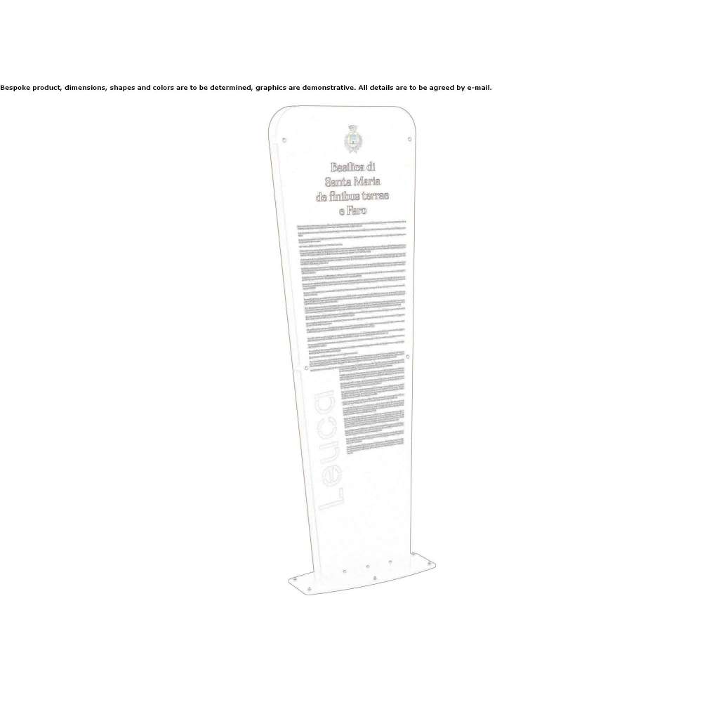 Pisa is a single-sided/double-sided free-standing totem with a modern and linear design, made of 5 mm thick laser-cut sheet metal and equipped with a base plate with holes for attaching to the ground with anchors (not included). Painted with epoxy powders with a corten effect (other colors on request).