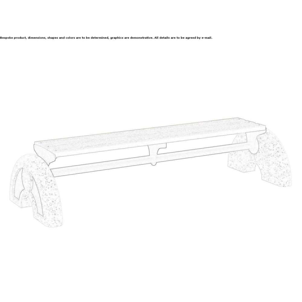 Arco is a WPC slatted bench consisting of "round arches", machined and resin-coated concrete side elements that form the basis of a new product with a multi-functional design. Ergonomic seat for short breaks, made of 3 slats of recycled technical wood WPC (wood-plastic composite), Seat supports made of laser-formed sheet metal 60/10 thick, connected by a horizontal bar made of galvanized steel pipe with a diameter of 60 mm , attached to the sides with screws. The products can be customized in one or two colors, with or without text, depending on customer requirements.