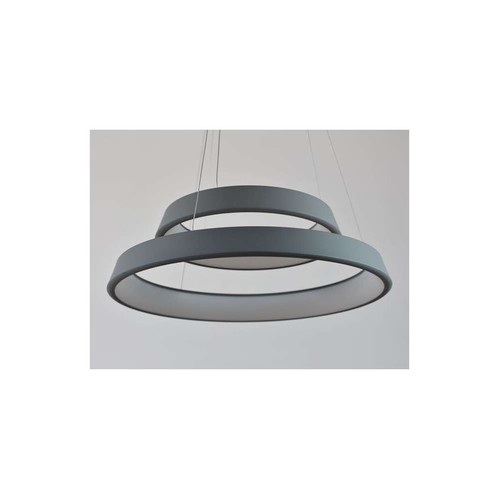 Introducing the Rico Hanging Lamp in Gray - the epitome of modern sophistication and style for any interior space. This contemporary ceiling lamp features a double ring design, crafted from high-quality SMD LEDs that emit a warm and inviting glow. Perfect for modern office interiors, the Rico Hanging Lamp offers a unique touch to any room.