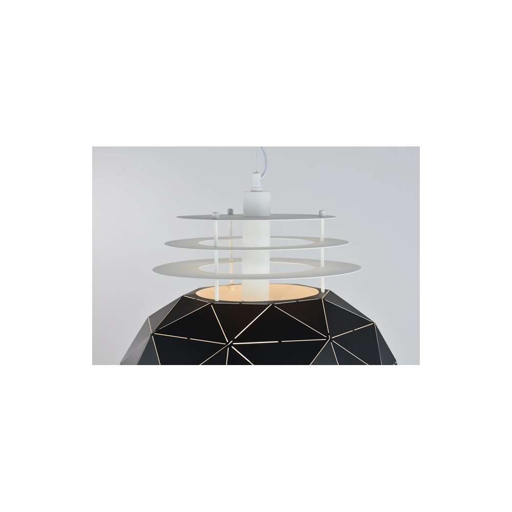 Introducing the Ritmo Hanging Lamp, a stunning addition to any space that will instantly elevate the ambiance with its unique design and modern flair. This geometric, modern industrial lamp comes in a sleek black version, perfect for adding a touch of sophistication to your home or office. Inspired by fashionable Scandinavian style, the Ritmo hanging lamp is a versatile piece that can complement a variety of room settings.