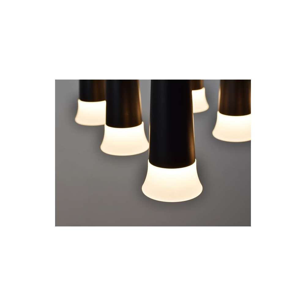 Introducing the Salvio 9 hanging lamp, a sleek and contemporary lighting solution that combines style and functionality in one. This modern hanging lamp is crafted with LED technology, offering a capacity of 63 watts in a warm black color that adds a touch of sophistication to any space.