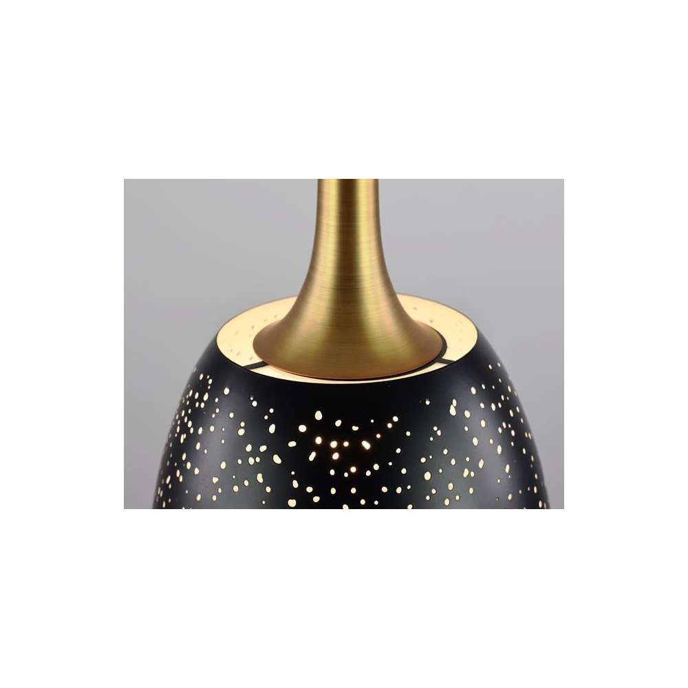 The Santo Hanging Lamp is not just visually appealing; it also provides ample illumination to brighten up your space. Its pendant design allows for focused lighting, making it ideal for task lighting or creating a cozy reading nook. The combination of black and antique gold colors adds a touch of luxury and elegance to any room, making it a standout piece in your interior decor.