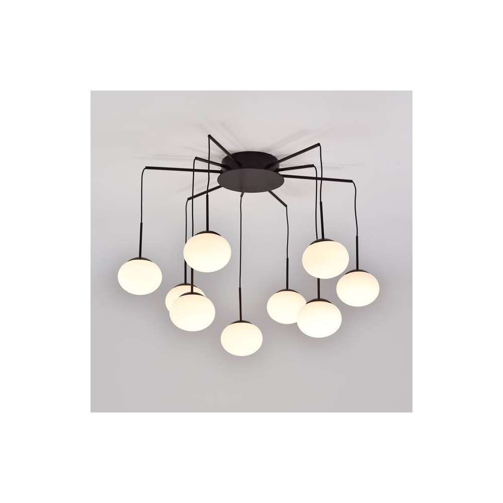 Introducing the stunning Nicola pendant lamp in black! This original ceiling lamp features nine powerful LED lampshades in a chic coffee color, emitting a warm LED light with a color temperature of 3000K. The sleek black finish adds a touch of modern sophistication to any room, making it a versatile and stylish lighting option for bedrooms, kitchens, children's rooms, hotels, restaurants, offices, and more.