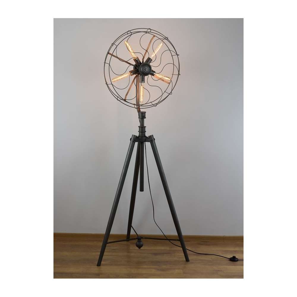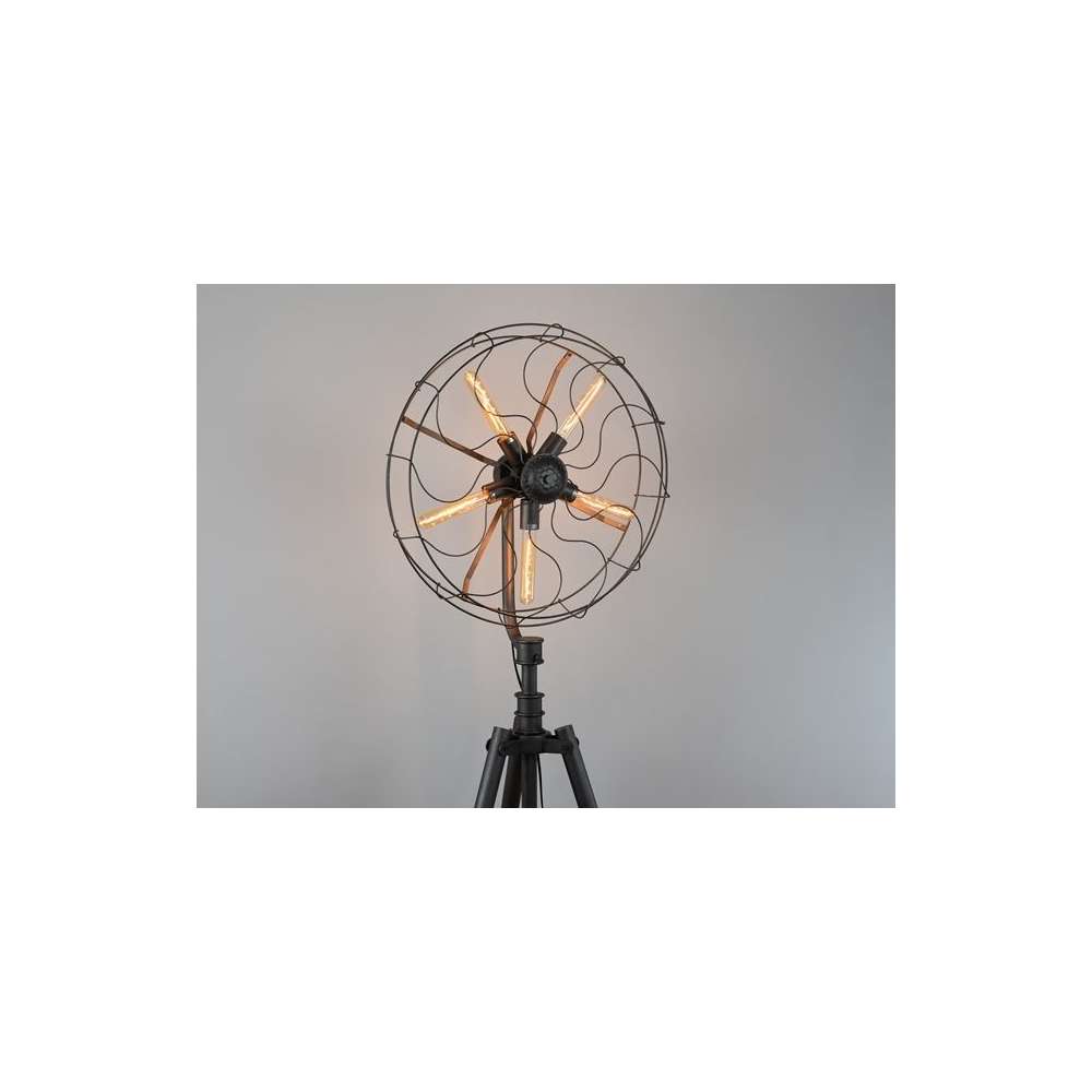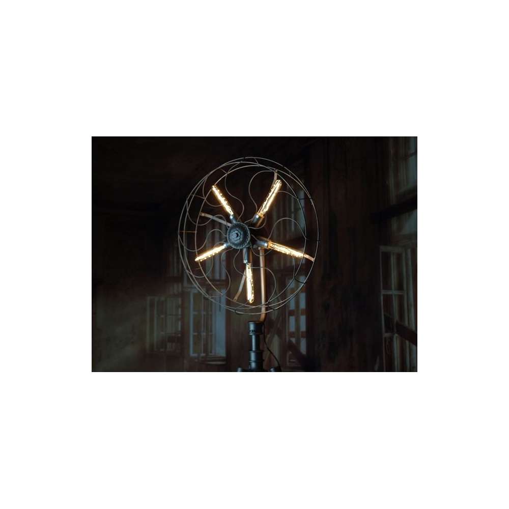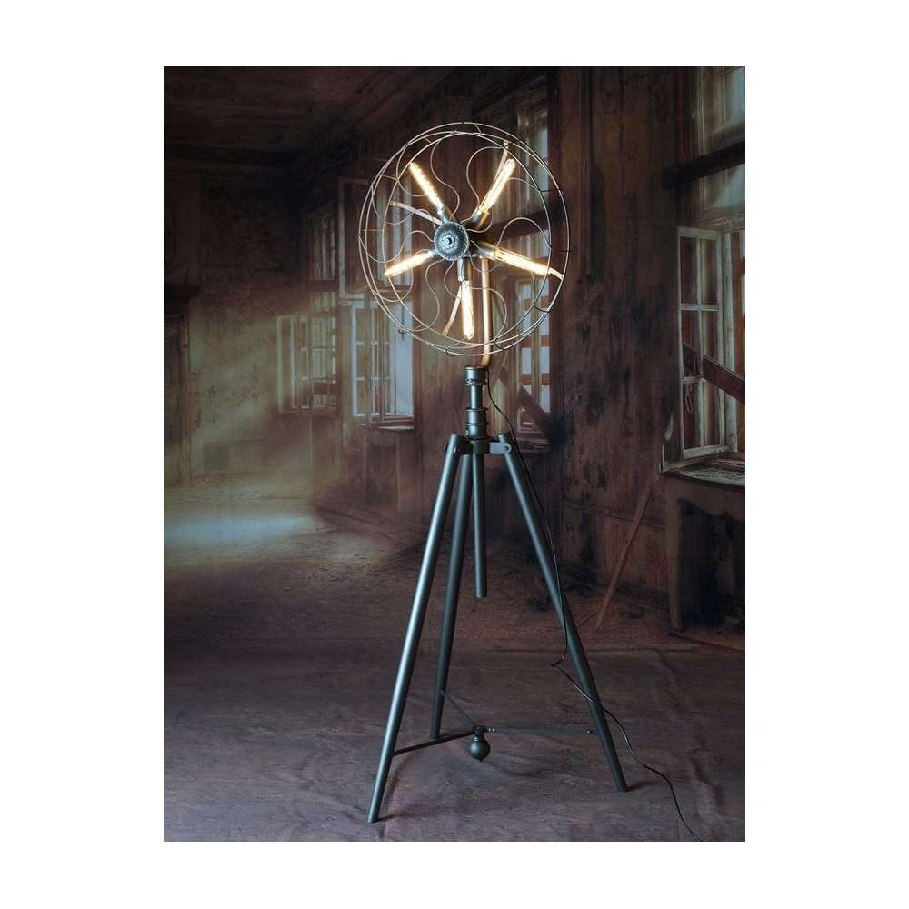 Introducing the Scrulo Industrial Floor Lamp - a unique and eye-catching addition to any living space! This original industrial floor lamp takes the form of a fan, adding a touch of vintage charm to your home. Please note, while it may look like a fan, this piece is actually a lamp designed to illuminate your space in style. The Scrulo Industrial Floor Lamp is sold without bulbs, allowing you to customize the lighting to suit your needs.