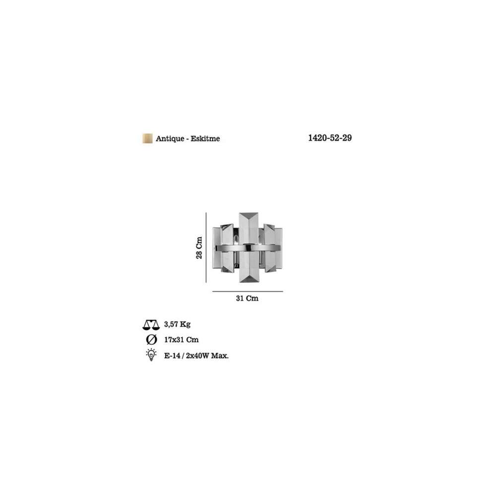 Dzięki szerokości 31 cm i wysokości 28 cm ten Lampa ścienna ma idealny rozmiar, aby wyrazić oświadczenie, nie przytłaczając przestrzeni. Przezroczysta patyna i kolor miedzi/brązu nadają jej ponadczasowy i elegancki wygląd, który będzie uzupełnieniem każdego stylu wystroju wnętrza.