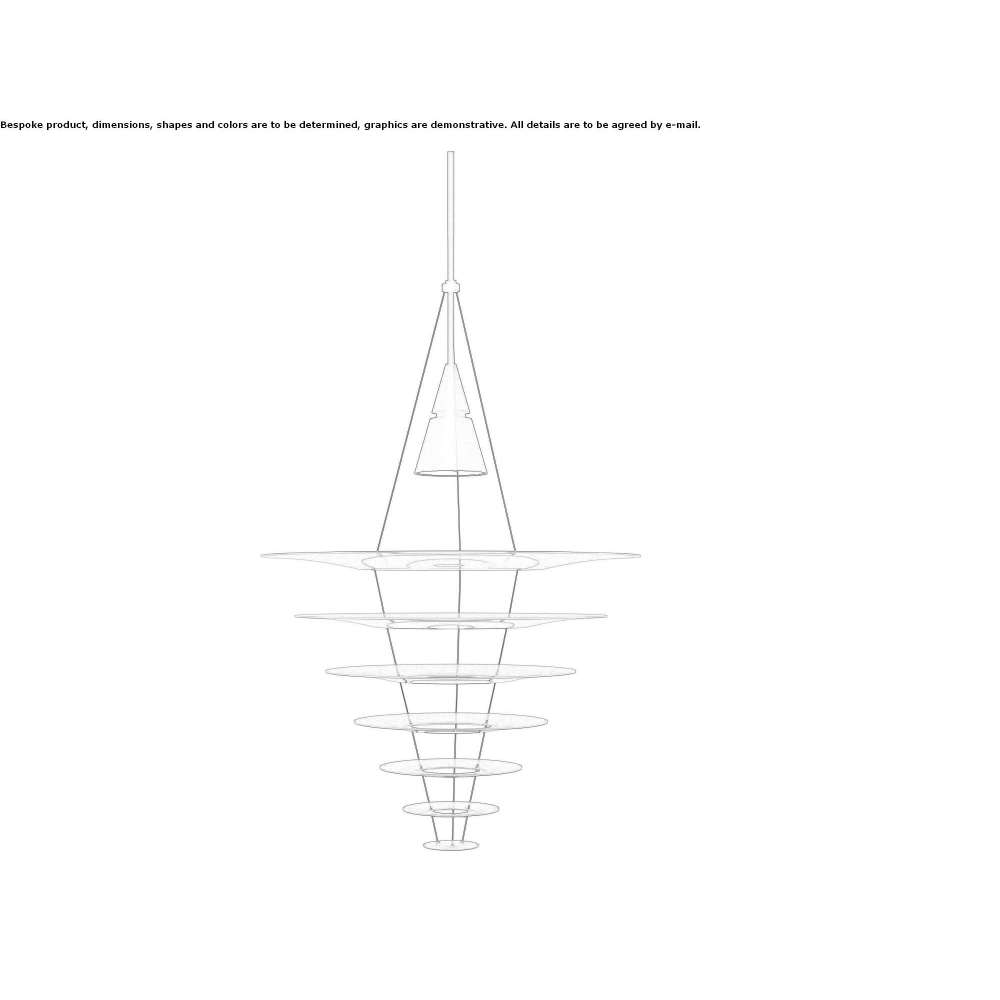 Trzymek i rura wisząca: aluminium malowane na mokro. Drut: stal nierdzewna. Klosze: Akryl.