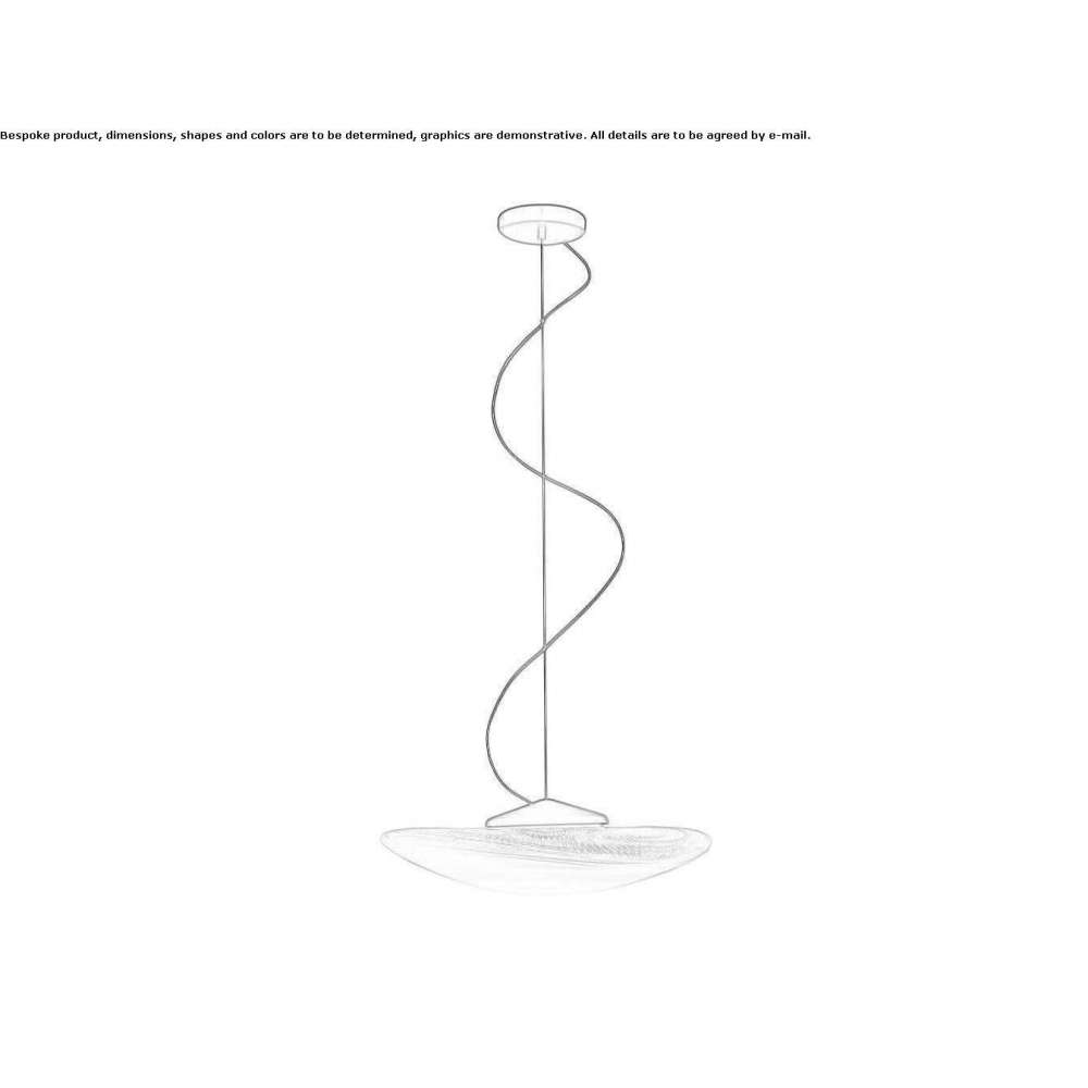 Loop to „tańcząca” lampa, która unosi się w powietrzu z wdziękiem i elegancją, wywierając urok poprzez ruchy swoich form. Drobne i delikatne szkło sprawia, że w tym dziwnym locie wydaje się lekki. Loop unosi się spokojnie w nieskończoności i kołysze się jak w przestrzeni, jak fałdy spódnicy poruszające się na wietrze lub zwinny transport meduzy.
