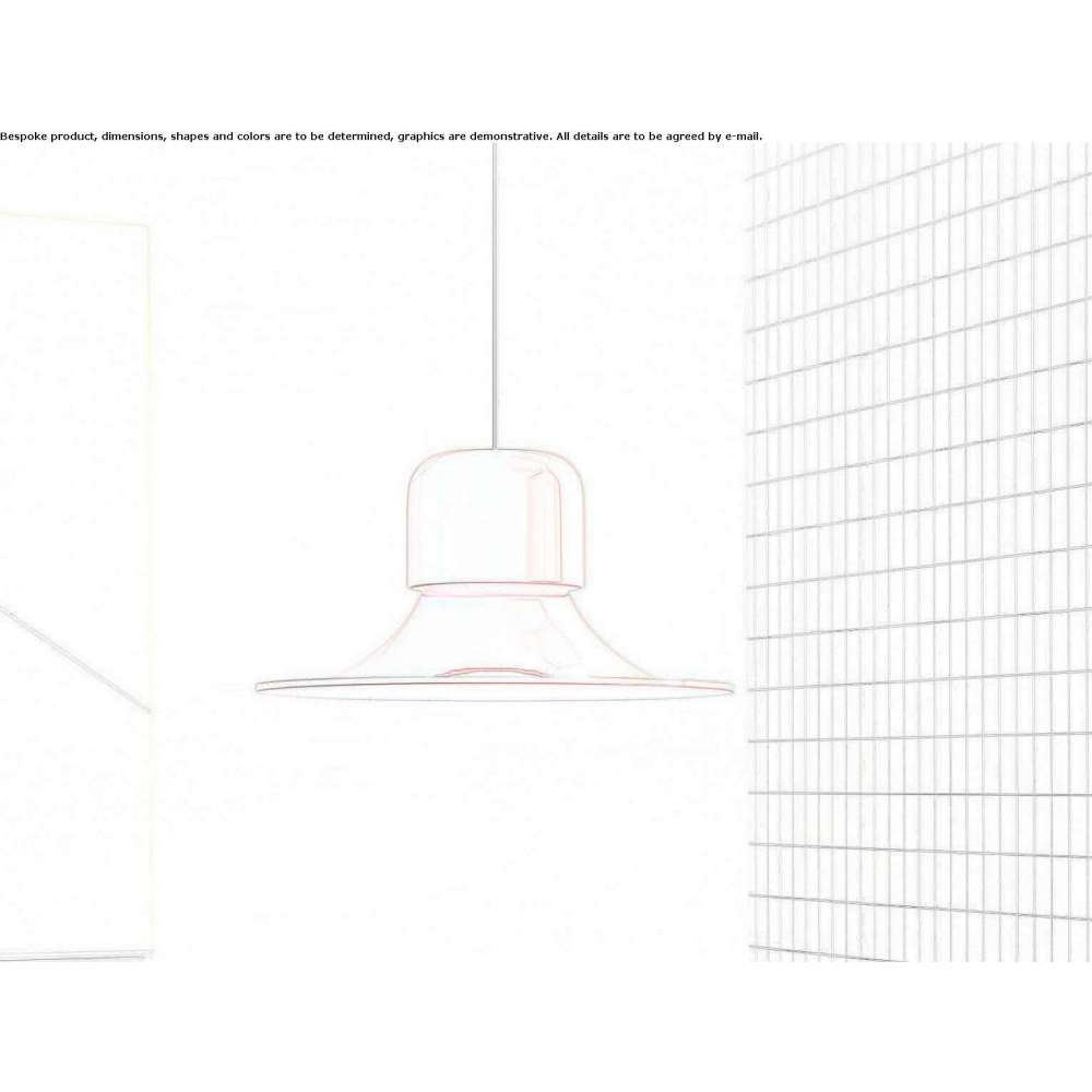 Campana to lampa wisząca z aluminiowym korpusem w błyszczących szaro-białych, czerwonych i dwukolorowych wykończeniach z szaro-białą obudową i kloszem ze szczotkowanego aluminium. Ściemnialne źródło światła topLED. Czarna metalowa obudowa z drutu, czarny kabel/przewód nośny.