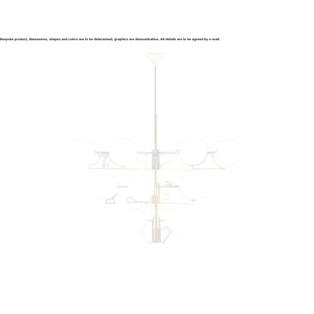 Mosiężny żyrandol składający się z 4 dwuwarstwowych białych szklanych kul rozmieszczonych na czterech poziomach. Ten wypełniający przestrzeń klasyczny żyrandol tworzy dramatyczny element w każdym hotelowym lobby, jadalni lub restauracji. Dostępny również w mniejszej wersji – krótki żyrandol.
