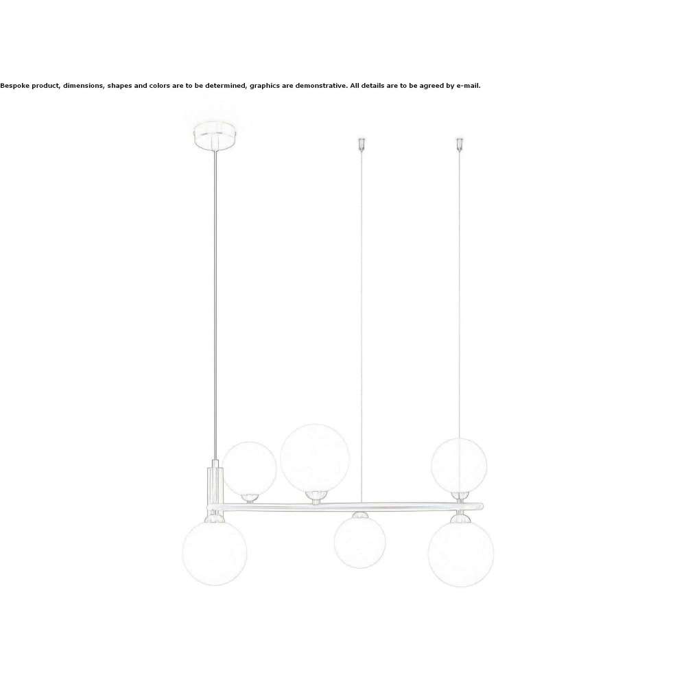 Ring to metalowa lampa wisząca z 6 dyfuzorami ze szkła trawionego. Wysokość regulowana za pomocą kabla. Źródło światła: 6xG9 25W, AC 220-240V, IP20