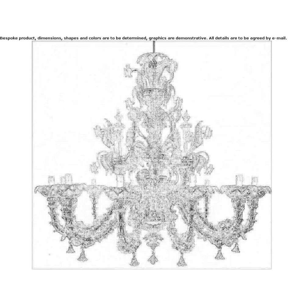 2305/CH12 to przezroczysty żyrandol ze szkła Murano z przezroczystymi i złotymi dekoracjami. Element oświetleniowy, który doskonale rozprasza światło