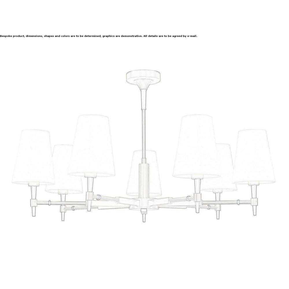Zaragoza to żyrandol z metalową ramą i wykończeniem z polerowanego mosiądzu. Białe abażury z tkaniny.