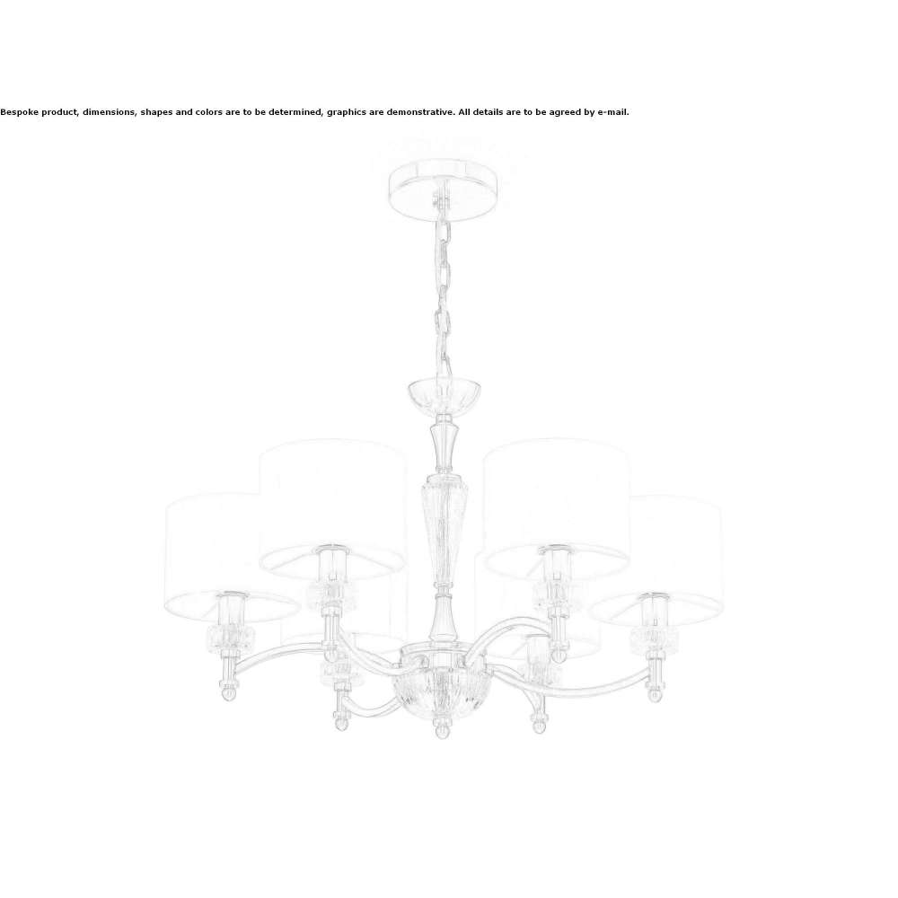 Alicante to żyrandol z metalową ramą i kloszem z PCV pokrytym białą tkaniną. Podstawa z elementami szklanymi. Klosz: Biały Żarówki: 6/8 x E14 (40W) 220 - 240V AC IP20 LED: Nie >Materiał: metal i szkło Materiał klosza: tkanina na PCV Żarówki w zestawie: Nie
