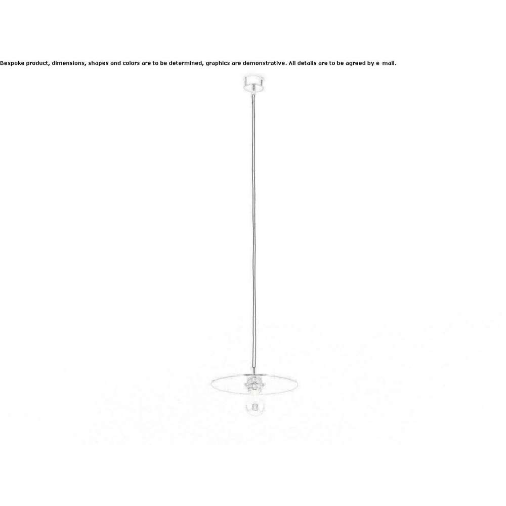 Metalowa lampa wisząca w kształcie dysku. Wykończenie: złoto, chrom, biały lub czarny. Metalowa oprawka E27. Żarówka nie jest dołączona. Dostępne rozmiary: 15, 25 i 35 cm.