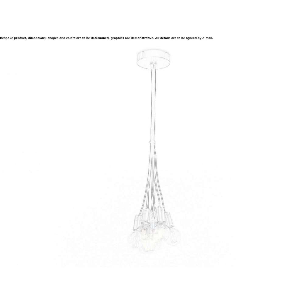 Lampa wisząca na 8 świateł. Części metalowe, wykończenie satynowo-niklowe. Kabel tekstylny w kolorze czarnym. Oprawka E27. Żarówki nie są dołączone.