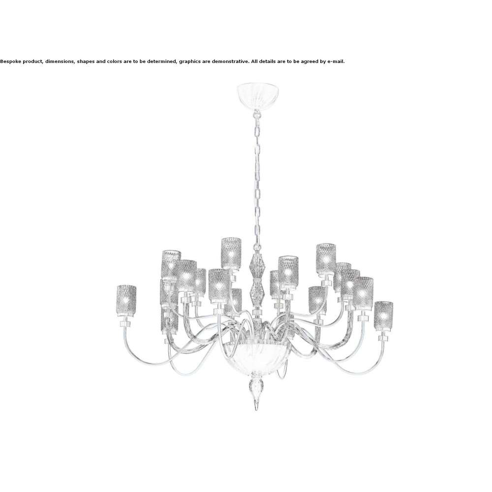 18 G9 x max 7W – 4000 K° 220 VdcŻyrandol składa się z naprzemiennych ramion metalowych i kryształowych.