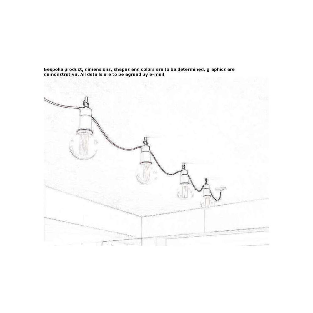 Kompozycja projektowa składająca się z jednej lub więcej lamp wiszących połączonych kolorowym kablem. Lampa wisząca składa się z podstawy z haczykiem z antycznego mosiądzu i modułu lampy z błyszczącej białej ceramiki lub z dekoracją z kolorowych nici. Kabel zamawiany osobno dostępny jest w różnych kolorach, które należy określić przy składaniu zamówienia.