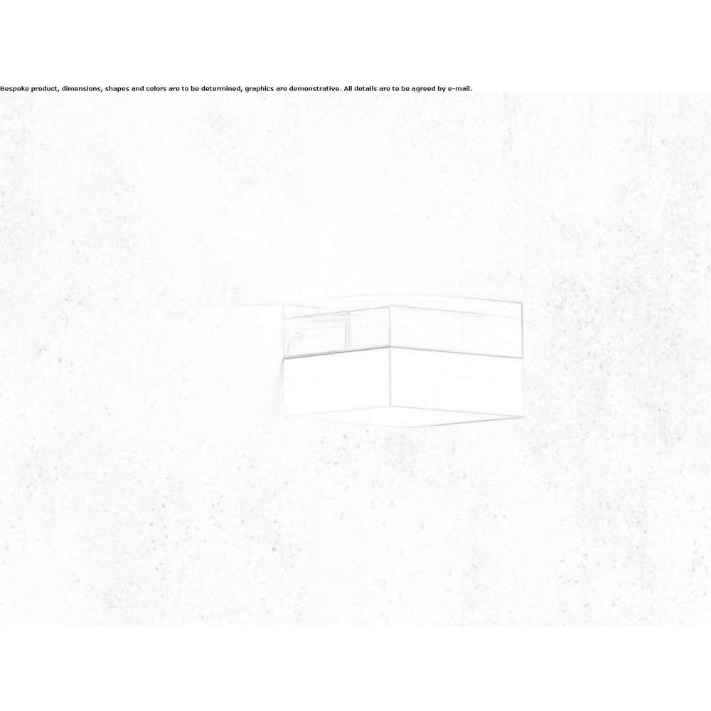 Cegła wykonana z grubego metakrylanu jest ustawiona nad cegłą o tych samych wymiarach, wykonaną z stal lakierowana na mat. Pierwsza zawiera światło, druga je rozprasza.