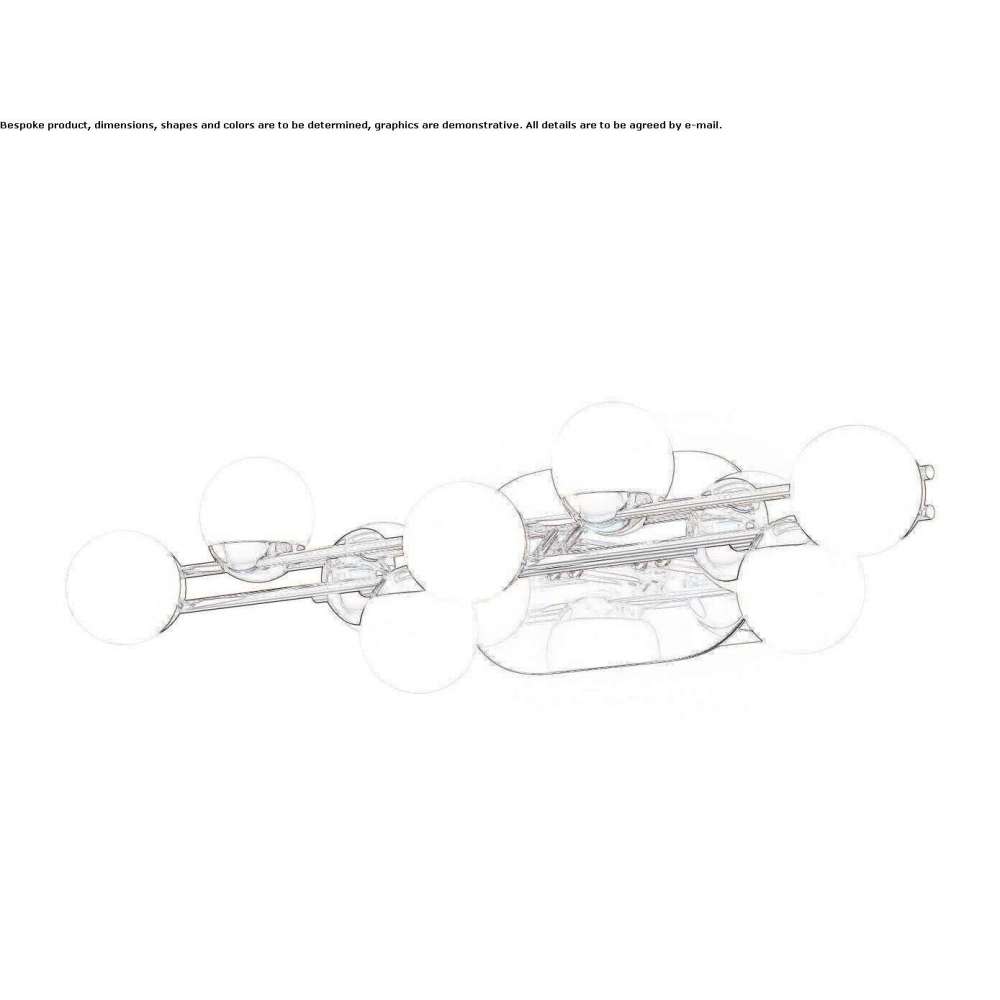 TESSARA to kinkiet ze złotymi metalowymi okuciami i kulistymi białymi plastikowymi kloszami. Projektowanie z symulacją struktury molekularnej. Źródła światła LED.